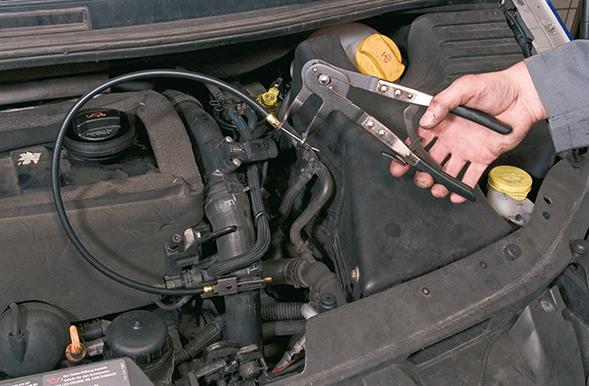 Kliešte na hadicové spony so semiflexibilným bovdenovým lankom, pre pružinové pásové spony a priestorovo úsporné spony. Rukoväte sú opláštené plastom. Pre samoupínacie pružinové pásové spony a priestorovo úsporné spony v oblasti systému chladenia a ohrevu.