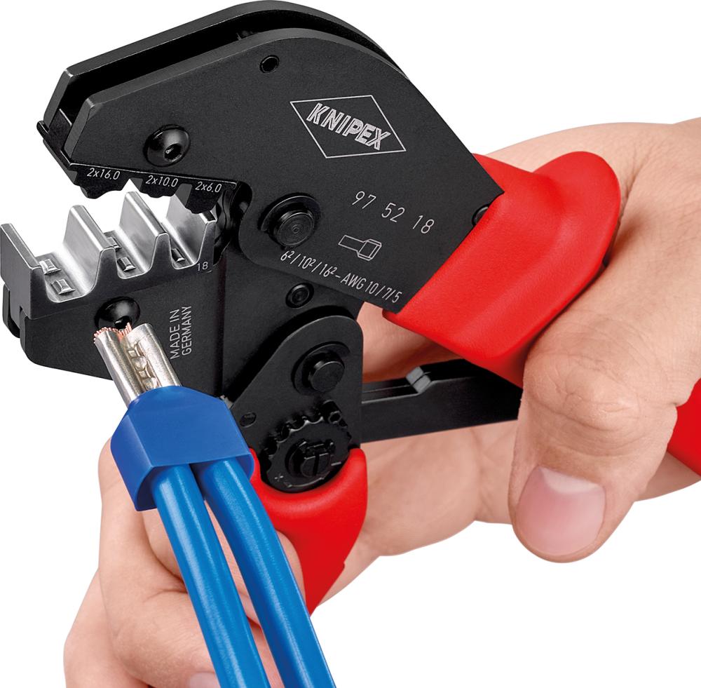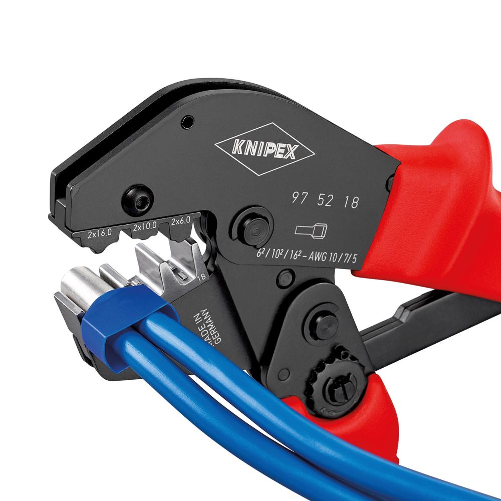 Krimpovacie pákové kliešte na dutinky Twin 2 x 6,2 x 10 a 2 x 16 mm2 KNIPEX (97 52 18) |