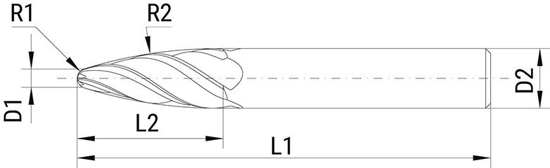 Oblouková fréza tvrdokov 2,0 mm Z4 tangenciální HA bez povlaku FORMAT GT (4317784628754) |