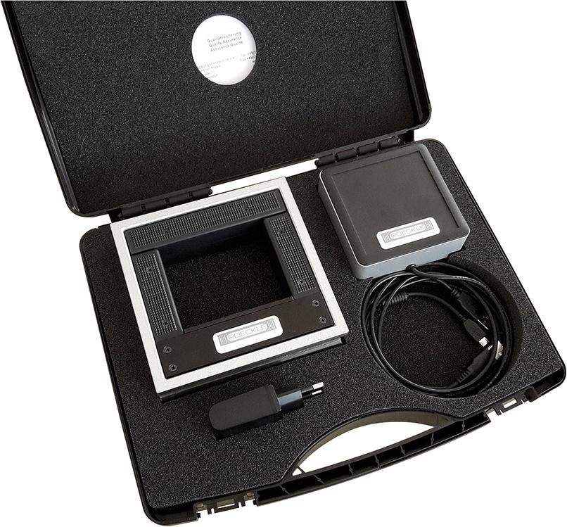 Rámová vodováha s vyrovnávacím prípravkom MICROLEVEL 150x150 mm/0,02 mm/m ROECKLE (5223/150/KK) |