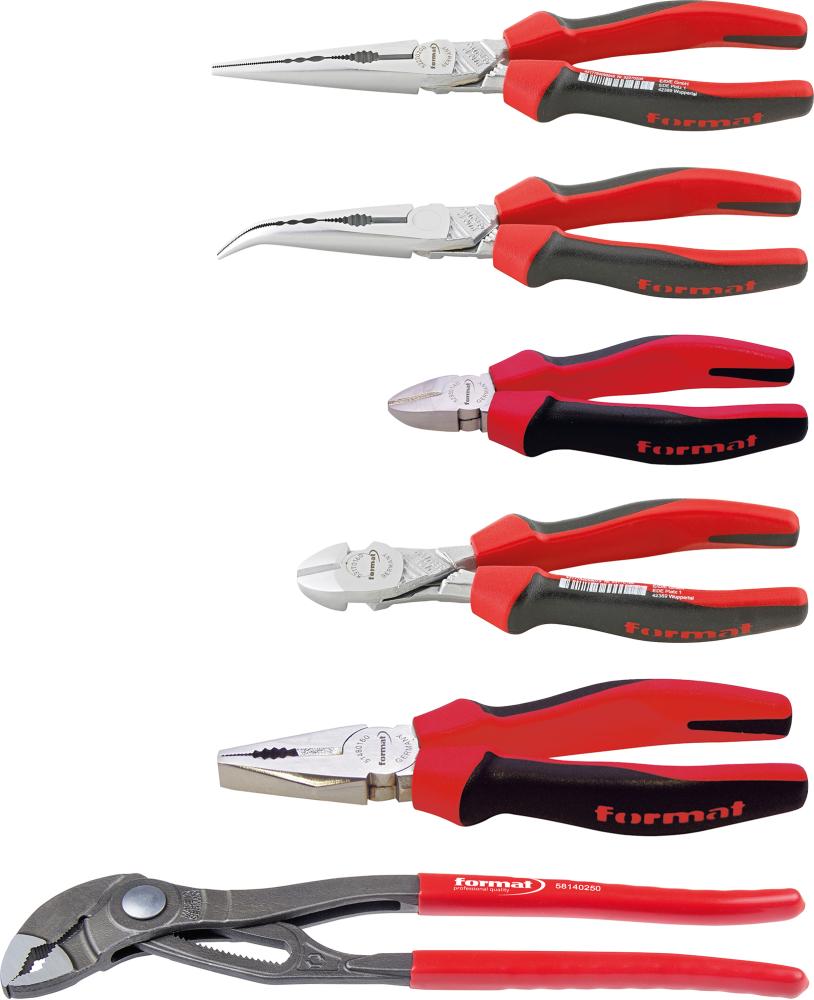 Sada klieští pochrómovaná s 2-zložkovými rukoväťami 6-dielna v kartónovej krabici FORMAT (4317784632409) |