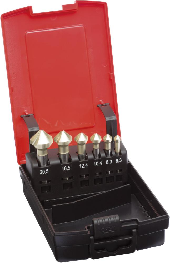 Sada kužeľových záhlbníkov DUO DIN335 HSSE tvar C stopka s 3 plochami 90° 6,3 – 20,5 mm FORMAT GT |