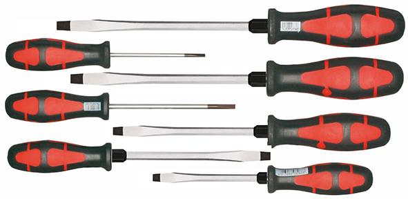 | Provedení | Obsah sady: 7 plochých šroubováků 3 x 80*; 3,5 x 125*; 4,5 x 90; 5,5 x 100; 7 x 125; 9 x 150; 10 x 175 mm * Kulatý břit. |