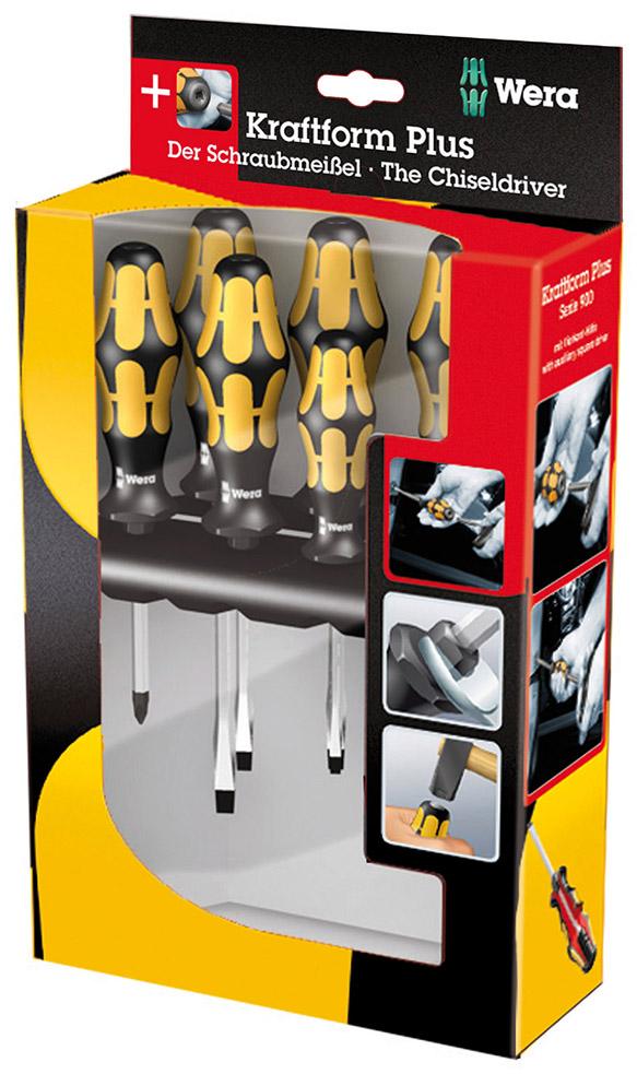 Sada skrutkovačov s úderovou hlavou, na drážku/PH, 6-dielna so štvorhranom Wera (932/6S) |