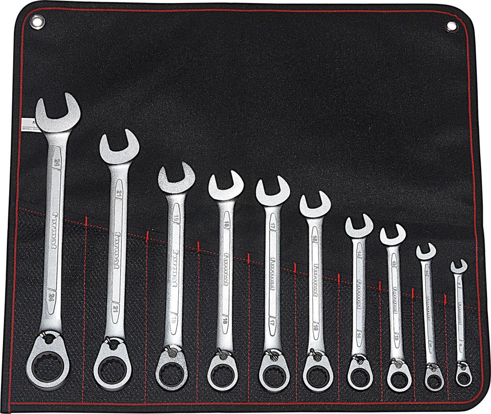 Sada vidlicových kľúčov s očkovou račňou, prepínateľných 8-24 mm 10 ks, v rolovacej taške FORMAT |