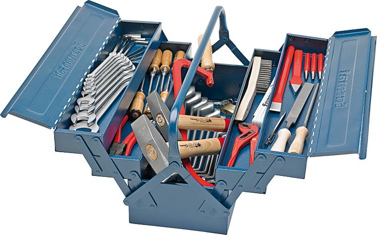 Sortiment náradia pre zámočníkov 56-dielny v kufríku z oceľového plechu FORMAT |